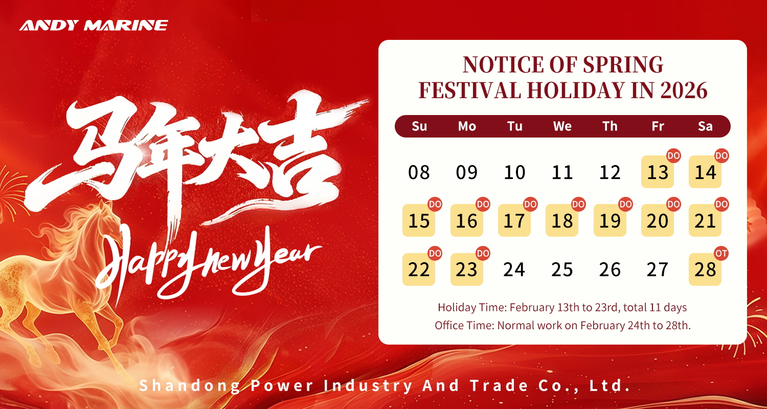नवीन वर्षात, अँडी मरीन उत्पादन गुणवत्ता, नवीन उत्पादन विकास आणि ग्राहक सेवा यावर लक्ष केंद्रित करणे सुरू ठेवेल, अधिक दीर्घकालीन सहकार्याच्या संधी शोधत असताना प्रत्येक ग्राहकाला चांगली सेवा देईल. तुमच्या विश्वासाबद्दल आणि समर्थनाबद्दल आम्ही तुमचे मनापासून आभारी आहोत.