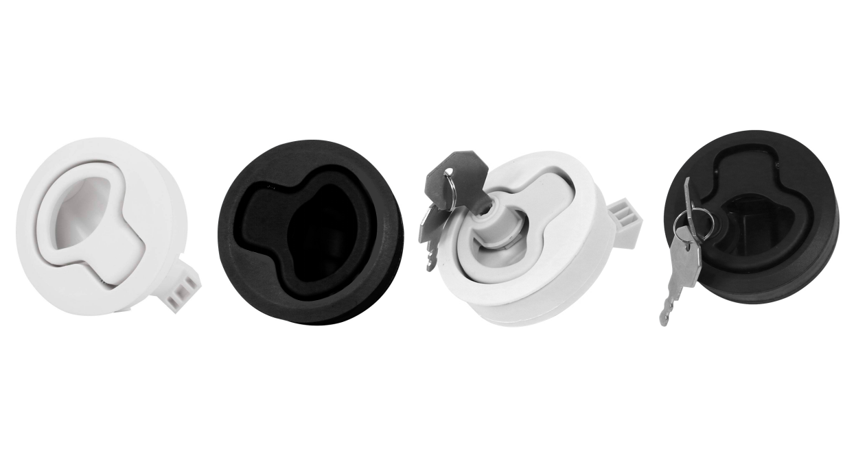 मानक नायलॉन फ्लोर लॉक: पांढर्या किंवा काळ्या रंगात उपलब्ध, हा मजबूत आणि विश्वासार्ह पर्याय बहुतेक सागरी फ्लोअरिंग प्रवेश परिस्थितीस अनुकूल आहे.