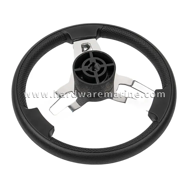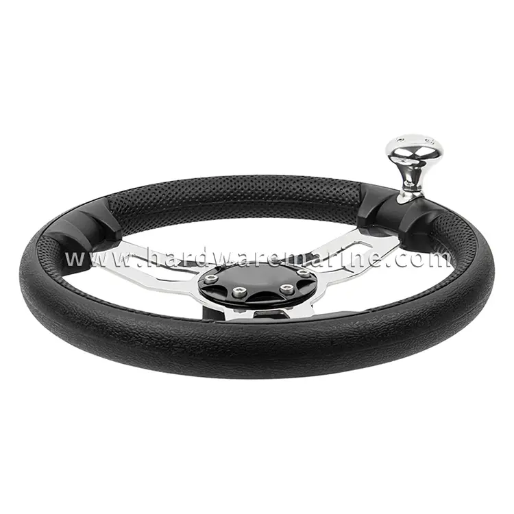 स्टेनलेस स्टील पीयू फोम 3-स्पोक बोट स्टीयरिंग व्हील नॉबसह |